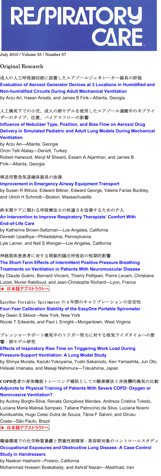 『Respiratory Care』 アブストラクト 日本語訳
